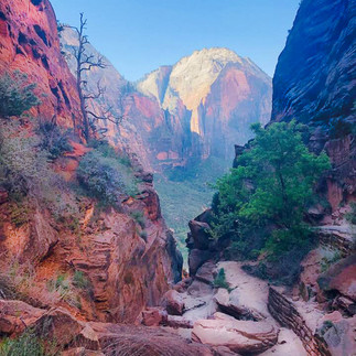 Although the park has 111 different trails, a Park Ranger told us that Angel's Landing is one of the most spectacular day hikes in the world, and she was right. The trail, to its lofty peak, was hewn out of a 1,488 foot tall rock formation in 1926. There are a series of 21 steep switchbacks that take you up to the Scout Lookout plateau, this is the last turn-around before ascending the final, extremely narrow, footpath that takes you to the peak.